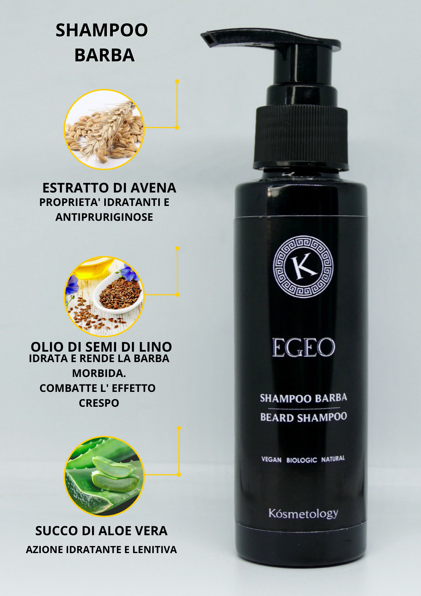 Egeo è uno shampoo naturale dalle forti proprietà idratanti e antipruriginose.